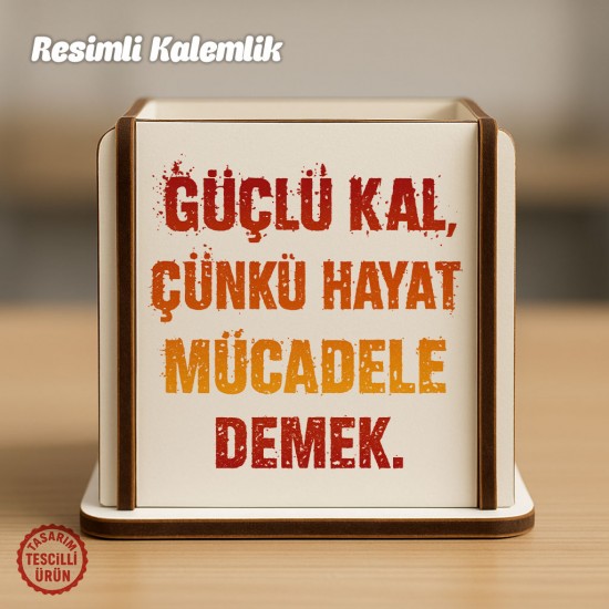 Etiketler: güçlü kal, mücadele, motivasyon, ilham, ahşap kalemlik, ofis hediyesi, dekorasyon, doğal, kaliteli, masaüstü.