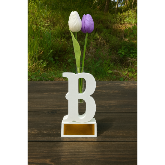Etiketler: B harfi, harf vazo, dekoratif vazo, modern dekorasyon, masa üstü ürün, hediye