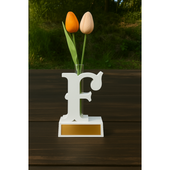 Etiketler: F harfi, harf vazo, dekoratif vazo, modern dekorasyon, masa üstü ürün, hediye