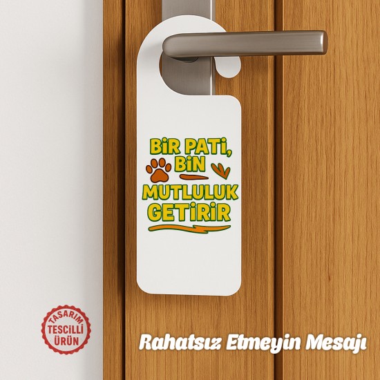 Sade ve içten tasarımı, her türlü iç mekan dekorasyonuyla uyum sağlar. Kapı askısının üzerindeki mesaj net ve duygusal bir anlam taşır. Bu özel tasarım aksesuar, sadece bir dekorasyon parçası değil, aynı zamanda hayvan sevgisinin gücünü simgeler. Evcil hayvanınızla geçirdiğiniz huzurlu anları size sürekli hatırlatır. Rahatsız edilmek istemediğiniz anlarda pratik bir çözüm sunar. Her baktığınızda bin mutluluk getiren o patileri düşünün.