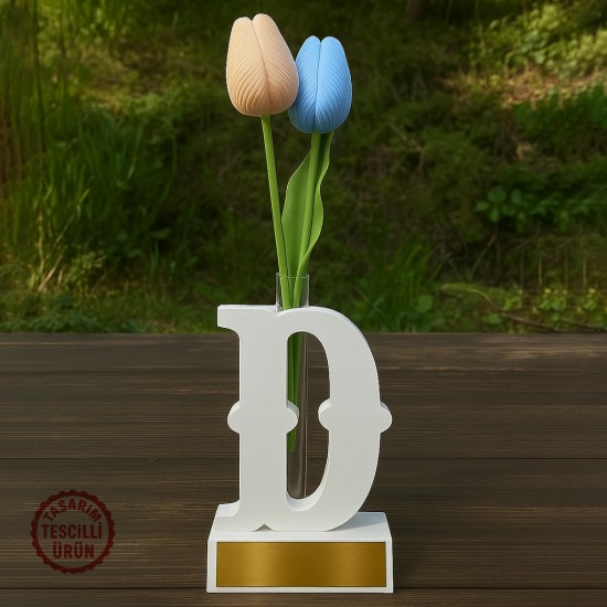 D Harfi Vazo, modern dekorasyon anlayışını kişisel dokunuşla birleştiren özel bir tasarımdır. Harf formundaki özgün yapısı sayesinde klasik vazolardan ayrılır ve bulunduğu ortamda güçlü bir dekoratif etki oluşturur. Salon, oturma odası, ofis, çalışma masası, raf ve masa üstü dekorasyonlarında rahatlıkla kullanılabilir.