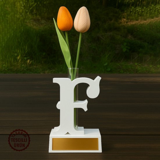 Etiketler: F harfi, harf vazo, dekoratif vazo, modern dekorasyon, masa üstü ürün, hediye