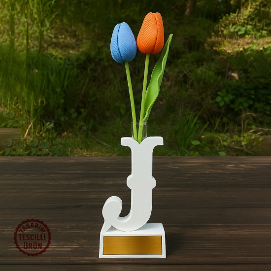 J Harfi Vazo, modern dekorasyon anlayışını kişisel baş harf detayıyla birleştiren şık ve özgün bir tasarımdır. Harf formundaki yapısı sayesinde klasik vazo modellerinden ayrılır ve bulunduğu ortamda dekoratif bir odak noktası oluşturur. Ev, ofis, çalışma masası, raf ve masa üstü alanlarda rahatlıkla kullanılabilir.