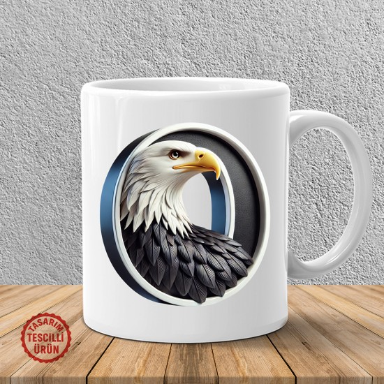 "O" Siyah Beyaz Kartal Harf Kupa Bardak