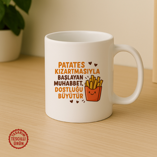 Etiketler: patates kızartması, muhabbet, dostluk, yemek, mizah, esprili, samimi, hediye, kupa, paylaşım.