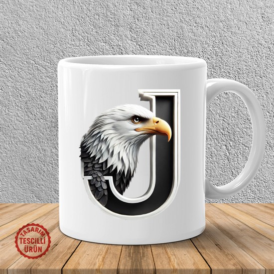 "J" Siyah Beyaz Kartal Harf Kupa Bardak