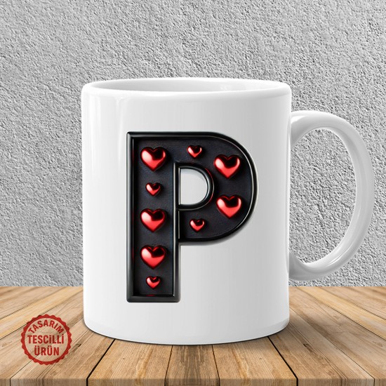 Etiketler: P harfi, kalp, romantik, kişiye özel, sevgi, hediye, sevgililer günü, zarif, kupa bardak, tasarım.