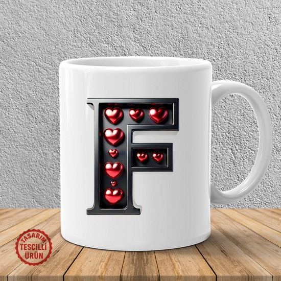 Etiketler: F harfi, kalp, romantik, kişiye özel, sevgi, hediye, sevgililer günü, zarif, kupa bardak, tasarım.