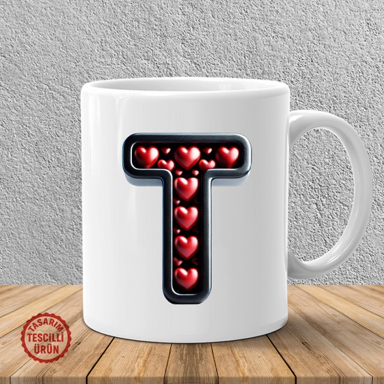 Etiketler: T harfi, kalp, romantik, kişiye özel, sevgi, hediye, sevgililer günü, zarif, kupa bardak, tasarım.