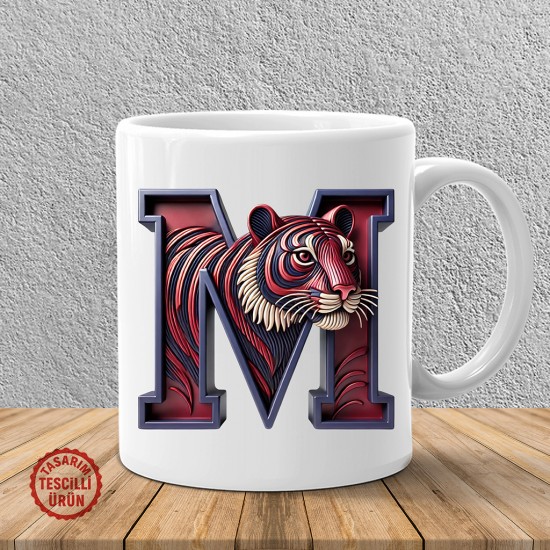 • "M" Bordo Mavi Kaplan Harf Kupa Bardak