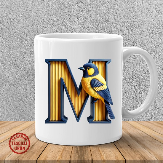 • "M" Sarı Lacivert Kanarya Harf Kupa Bardak