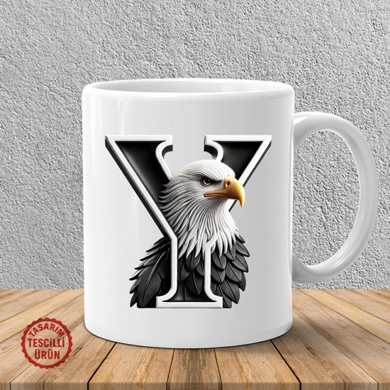 Etiketler: Y harfi, siyah beyaz, kartal, harf kupa, kişiye özel, taraftar, hediye, spor, kupa bardak, tasarım.