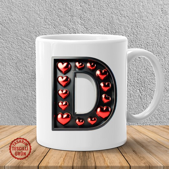 Etiketler: D harfi, kalp, romantik, kişiye özel, sevgi, hediye, sevgililer günü, zarif, kupa bardak, tasarım.