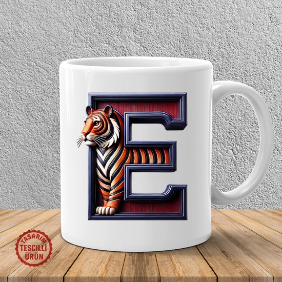 Yüksek kaliteli seramik malzemeden özenle üretilen bu bardak, hem günlük kullanımda güvenebileceğiniz kadar sağlam hem de masanızda kişisel imzanızı vurgulayacak kadar estetiktir. Bordo ve mavi renklerin yoğunluğu ile kaplan deseni, uzun ömürlü ve canlılığını koruyan üstün baskı teknolojisiyle kupaya sabitlenmiştir. Bu ürün, doğum günü, isim günü veya terfi gibi anlarda baş harfi "E" olan sevdiklerinize sunabileceğiniz en kişisel ve anlam dolu hediye seçeneklerinden biridir. Bordo-mavi renklere gönül vermiş, gücü ve sadakati benimseyen her birey için mükemmel bir aksesuardır. Asaleti, tutkuyu ve kişisel imzayı taşıyan bu kupayı hemen koleksiyonunuza ekleyin.