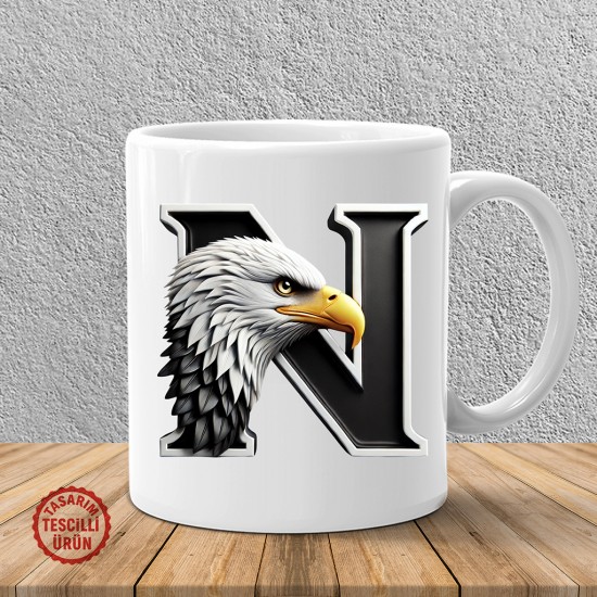 "N" Siyah Beyaz Kartal Harf Kupa Bardak