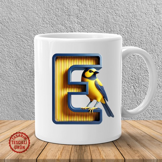 Etiketler: E harfi, sarı lacivert, kanarya, harf kupa, kişiye özel, taraftar, hediye, spor, kupa bardak, tasarım.