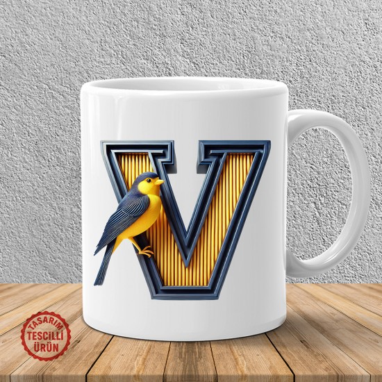 Etiketler: V harfi, sarı lacivert, kanarya, harf kupa, kişiye özel, taraftar, hediye, spor, kupa bardak, tasarım.