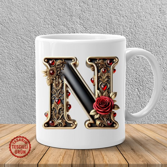 Etiketler: N harfi, gold siyah, kalp, lüks, romantik, kişiye özel, hediye, sevgililer günü, kupa bardak, tasarım.