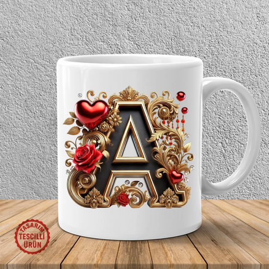 Etiketler: A harfi, gold siyah, kalp, lüks, romantik, kişiye özel, hediye, sevgililer günü, kupa bardak, tasarım.