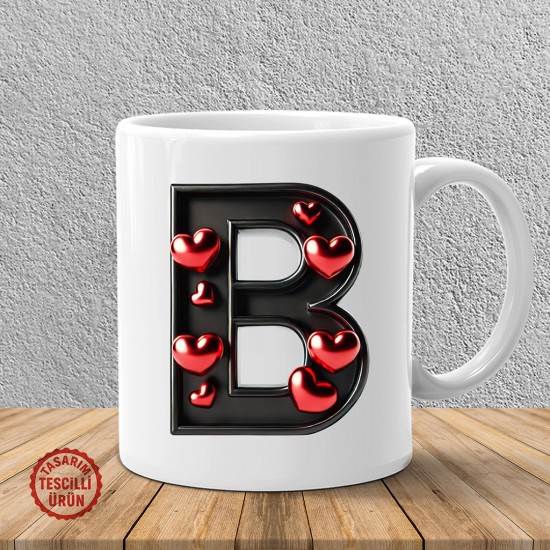 Etiketler: B harfi, kalp, romantik, kişiye özel, sevgi, hediye, sevgililer günü, zarif, kupa bardak, tasarım.