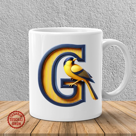 Etiketler: G harfi, sarı lacivert, kanarya, harf kupa, kişiye özel, taraftar, hediye, spor, kupa bardak, tasarım.