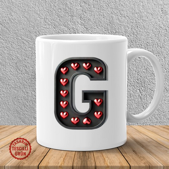 Etiketler: G harfi, kalp, romantik, kişiye özel, sevgi, hediye, sevgililer günü, zarif, kupa bardak, tasarım.