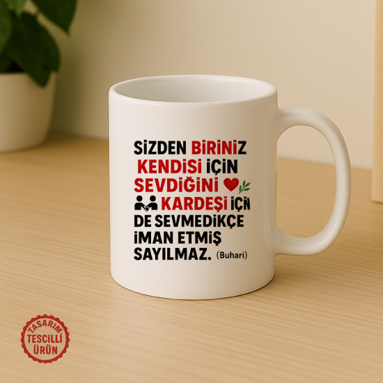• Sizden Biriniz Kendisi İçin Sevdiğini Kardeşi İçinde Sevmedikçe İman Etmiş Sayılmaz Kupa Bardak