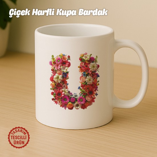 Etiketler: U harfi kupa, çiçekli, minimalist, dingin, hediye, seramik, tasarım, alphabet, kahve.
