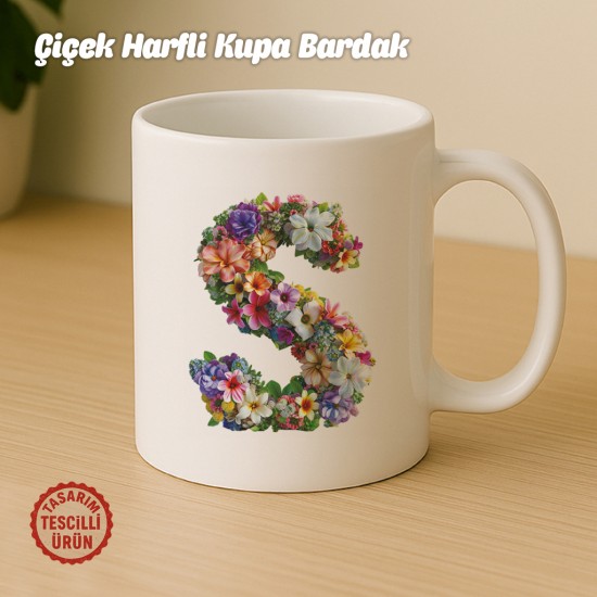 "S" Çiçekli Harf Kupa Bardak, kahve molalarına huzur, sakinlik ve geleneksel bir zarafet katmak üzere tasarlandı. Bu özel tasarım, büyük ve akıcı hatlara sahip bir "S" harfinin etrafını saran, genellikle lavanta veya sarmaşık gibi huzur verici motiflerle süslenmiştir. Tasarımın dingin ve zarif yapısı, kupayı kullanan kişinin huzurlu ve naif karakterini yansıtır. "S" harfinin kişisel önemi ile çiçeklerin sakinleştirici etkisi, bu kupayı günlük kullanıma uygun, eşsiz ve estetik bir parçaya dönüştürür.