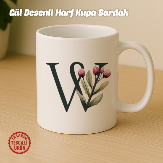 Etiketler: W harfi kupa, gül desenli, romantik, özgün, hediye, seramik, tasarım, alphabet, kahve.