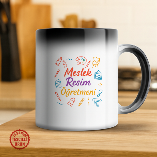 Teknik çizimin hassasiyetini, sanatsal yaratıcılığı ve öğrencilere hem el becerisi hem de hayal gücü kazandırmayı amaçlayan Meslek Resim (Teknik Çizim/Perspektif) öğretmenine özel manifesto: Meslek Resim Öğretmeni Sihirli Kupa Bardak. Bu sihirli kupa, soğukken gizemli ve sade bir görünüm sergiler. Ancak içine sıcak içecek (kahve, odaklanma çayı vb.) eklediğinizde yüzeyindeki branş ruhunu yansıtan komik mesaj ortaya çıkar: "Çizgiler Konuşur (Ama Önce Cetveli Düz Tut)". Bu sihirli an, size teknik resmin inceliklerini, çizim kurallarının önemini ve sanatın ve projenin birleştiği o anları hatırlatır.